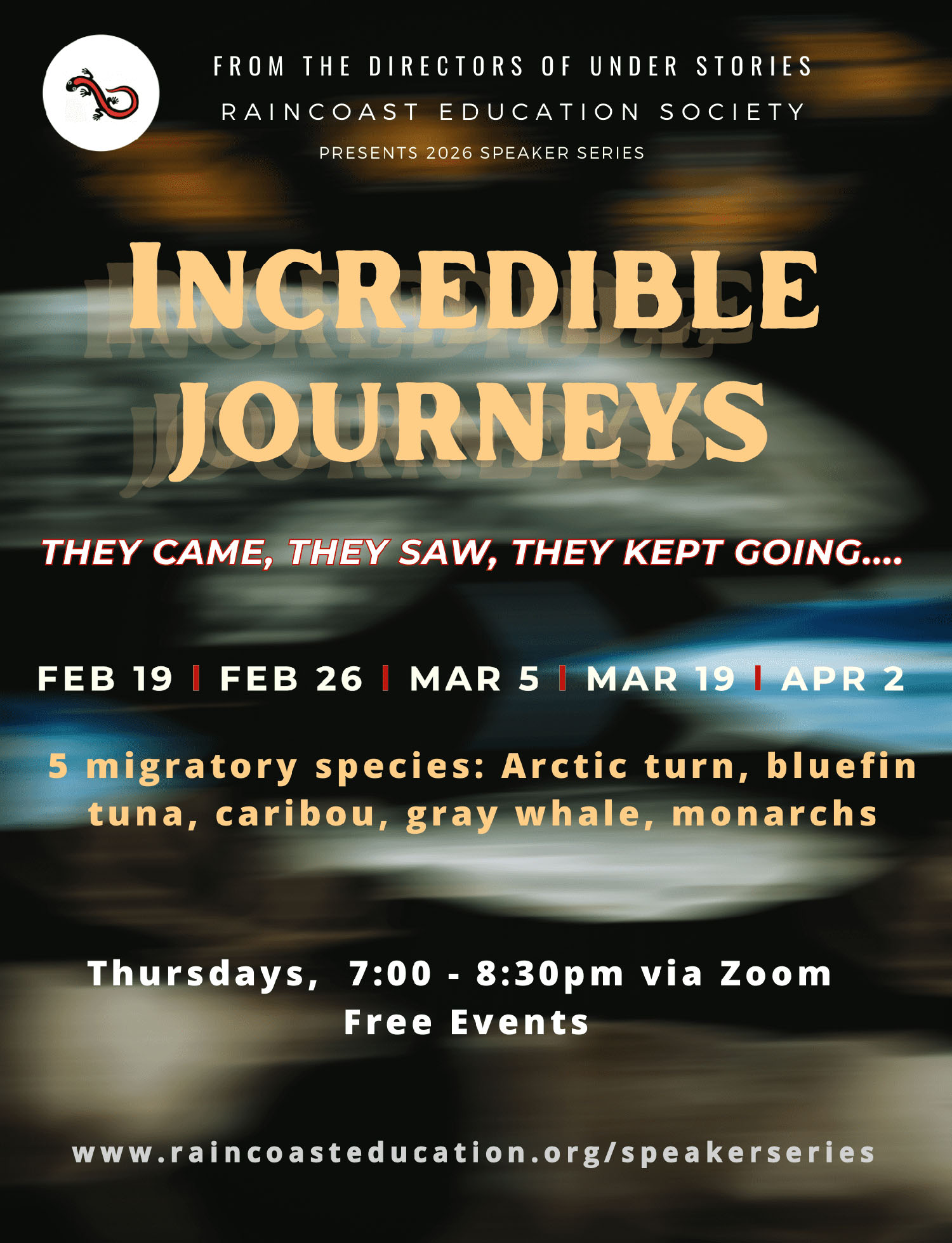 Raincoast Education Society is excited to host the 2026 Speaker Series, Incredible Journeys, featuring guest speakers exploring the science behind some of the planet’s most remarkable migrations.